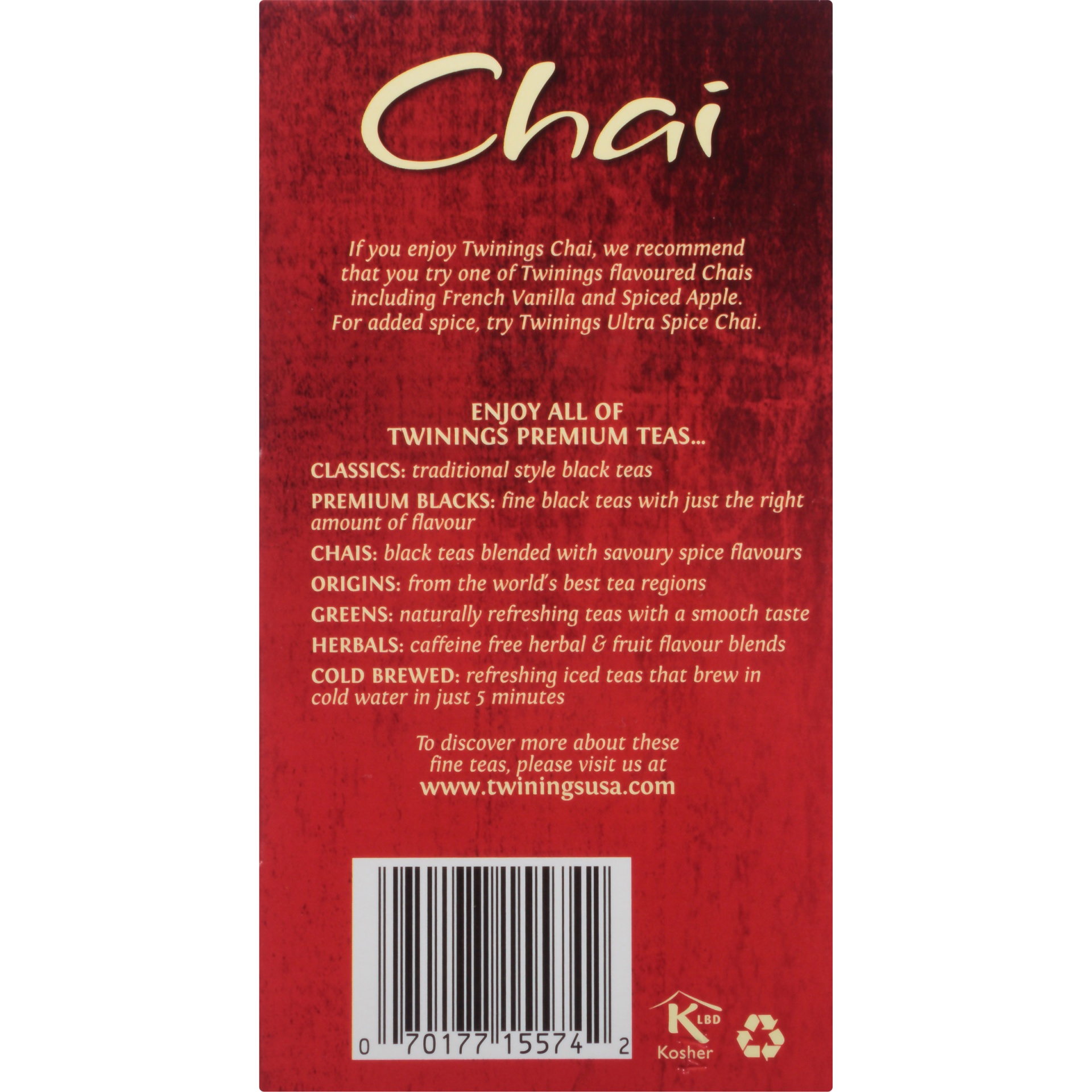 Twinings blends to perfection the finest black teas with the sweet and savoury spice flavours of cinnamon, cardamom, cloves and ginger to deliver a flavourful tea with a warm, soothing aroma and fresh…