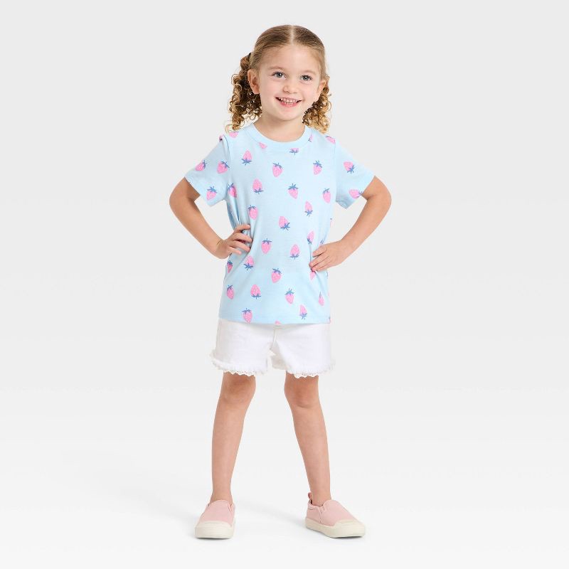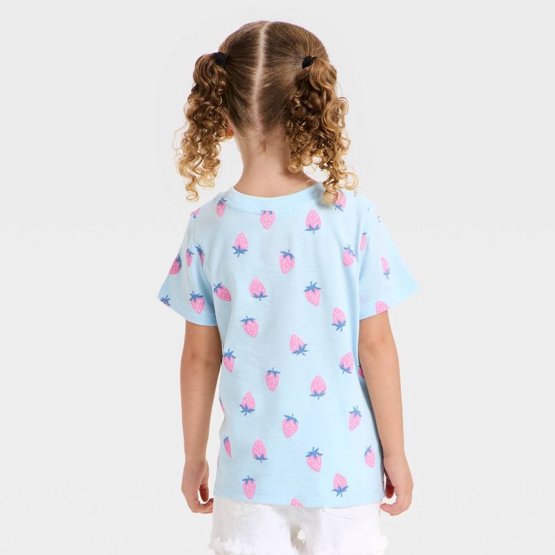 Toddler Girls' Short Sleeve Strawberries Printed T-Shirt - Cat & Jack™ Light Blue 4T