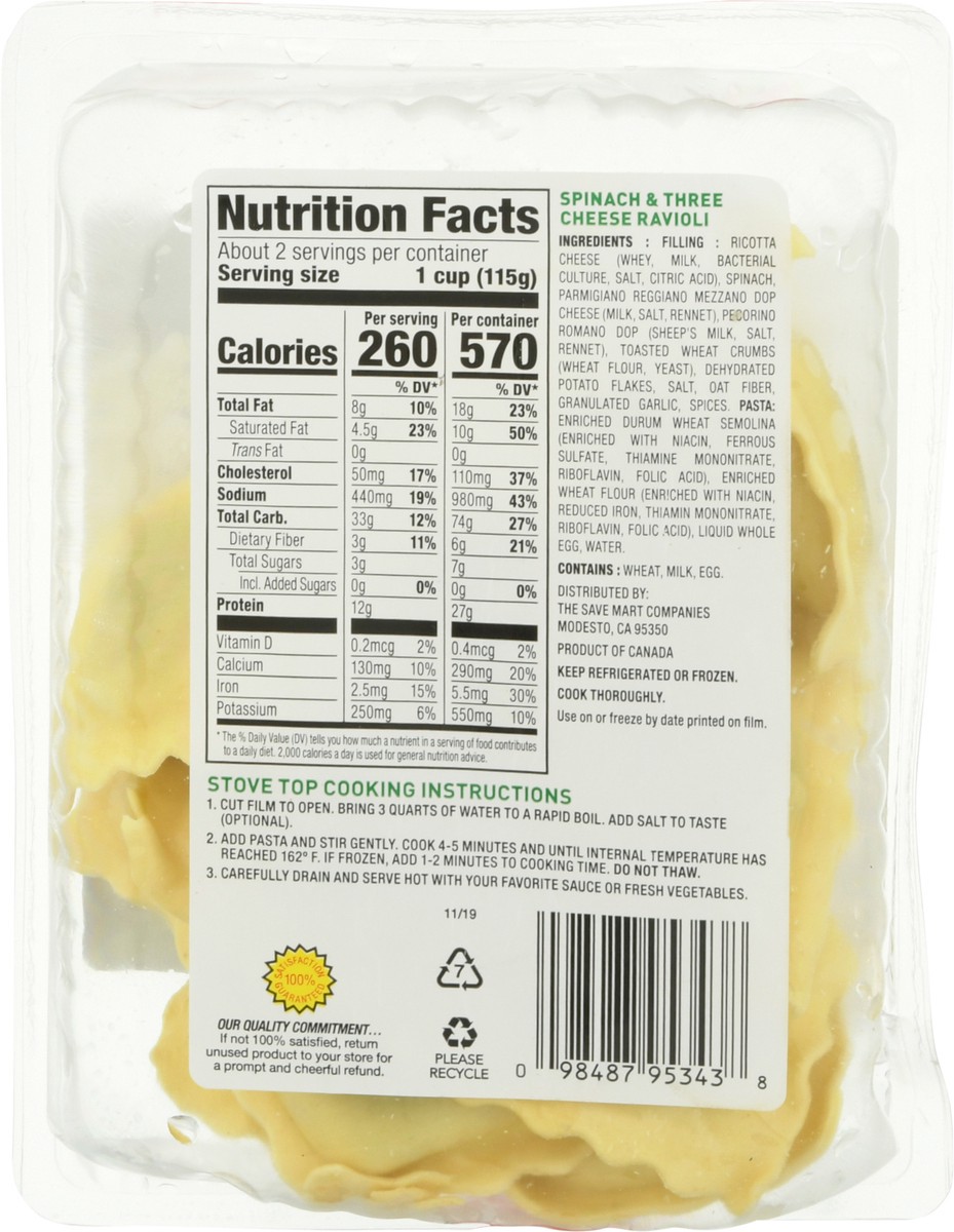 Pacific Coast Selections Jumbo Stuffed Pasta Premium Spinach & Three Cheese Ravioli 9 oz
