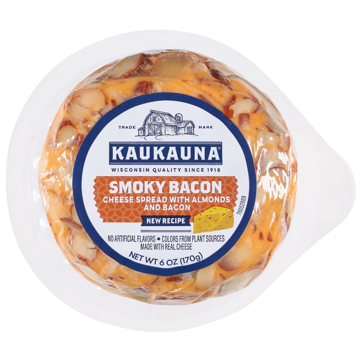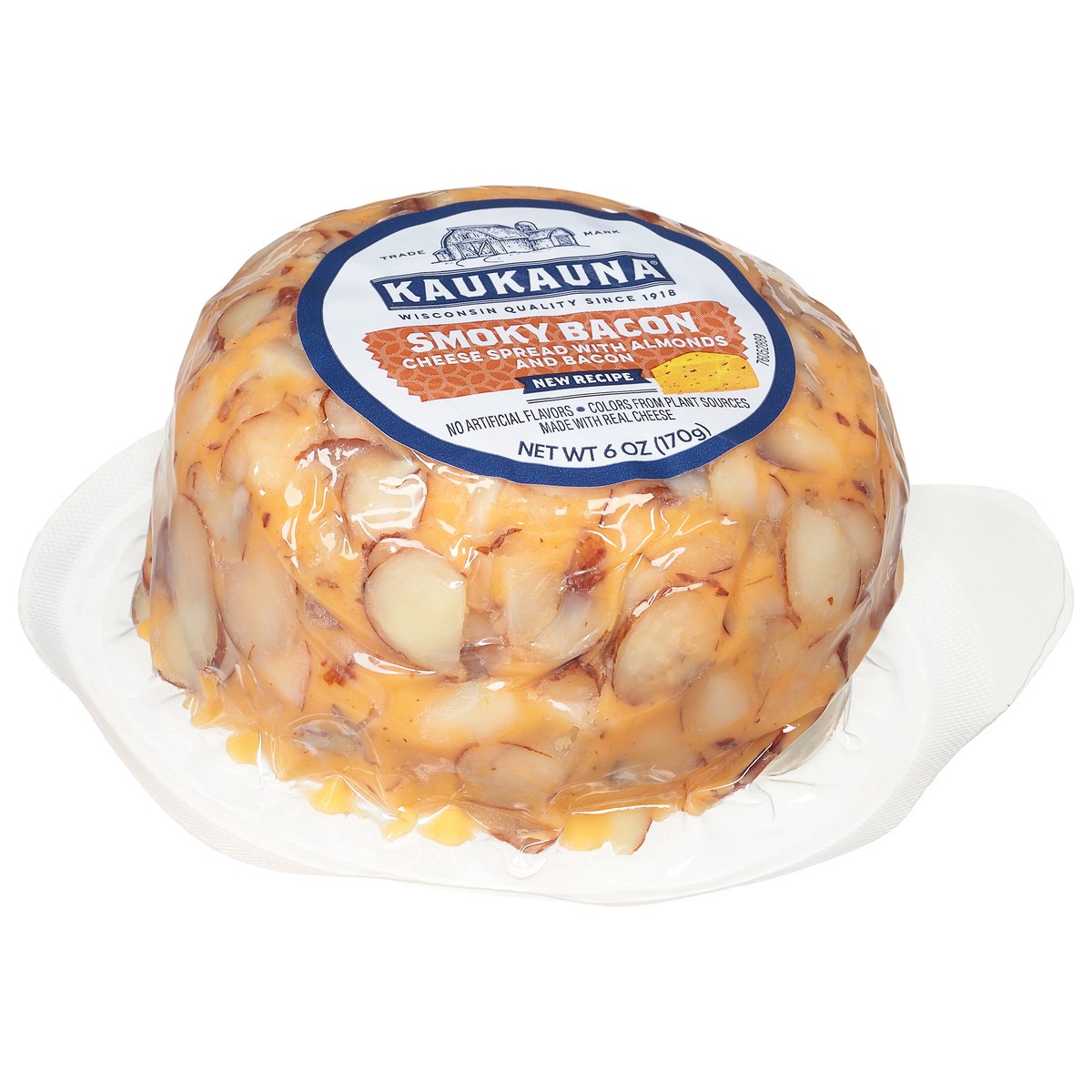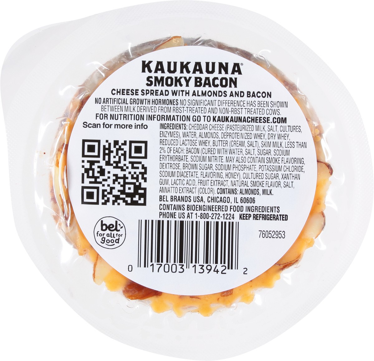 Cheese spread with almonds and bacon. No artificial flavors. Contains bioengineered food ingredients. Wisconsin quality since 1918. New recipe. Colors from plant sources. No artificial growth hormones…