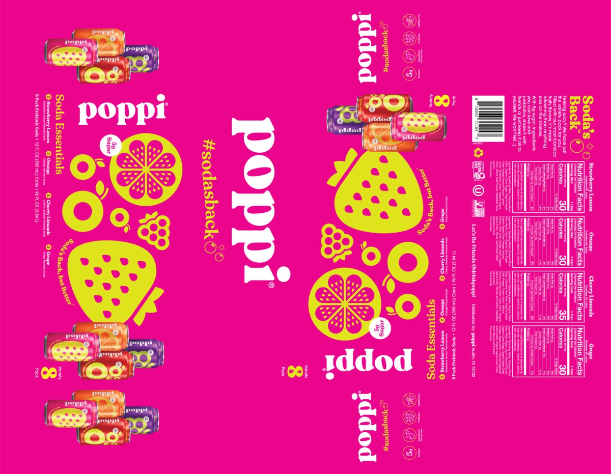 Poppi Assorted Prebiotic Soda Variety Pack 8 - 12 fl oz Cans