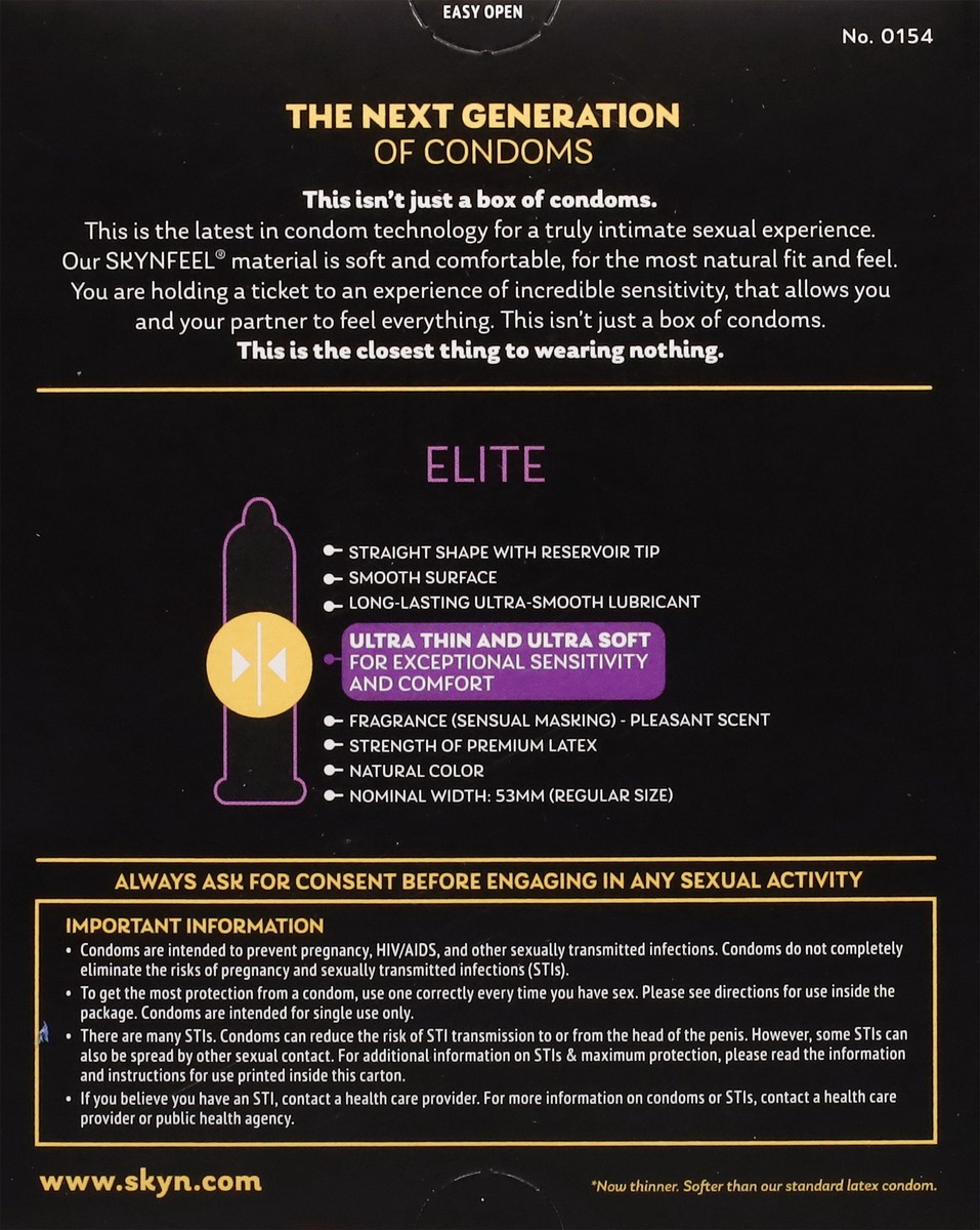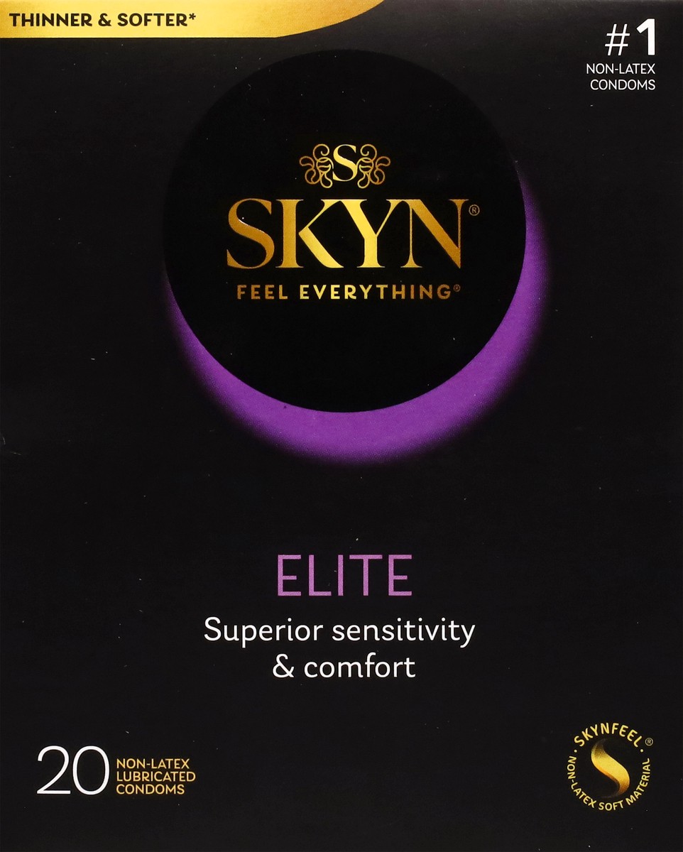 SKYN Elite Ultra Thin Premium Polyisoprene Lubricated Condoms are made with SKYNFEEL, a non-latex material that feels soft and natural. 15% thinner than our SKYN Original condoms, these condoms provid…