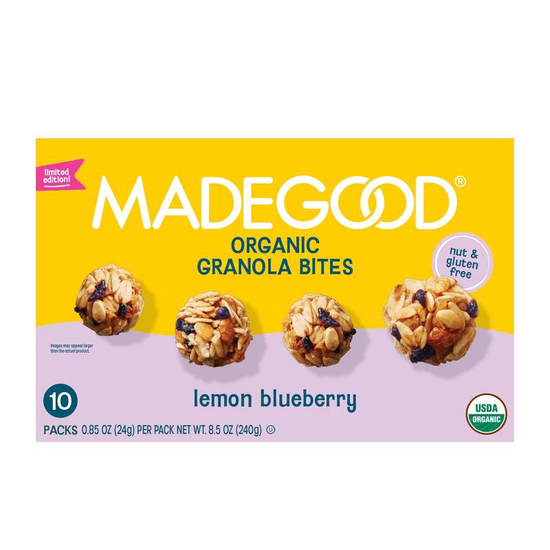 MadeGood Organic Snack Bars Granola Bites Lemon Blueberry - 8.5oz/10ct