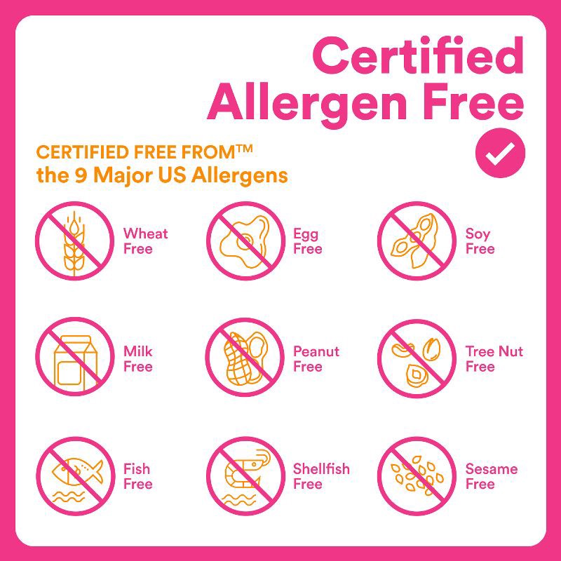 Features: Dairy-Free, Tree Nut Free, Non-GMO, Soy-Free, Peanut-Free, Wheat Free, No High Fructose Corn Syrup, No Artificial Flavors, Colors or Preservatives, Does Not Contain Egg