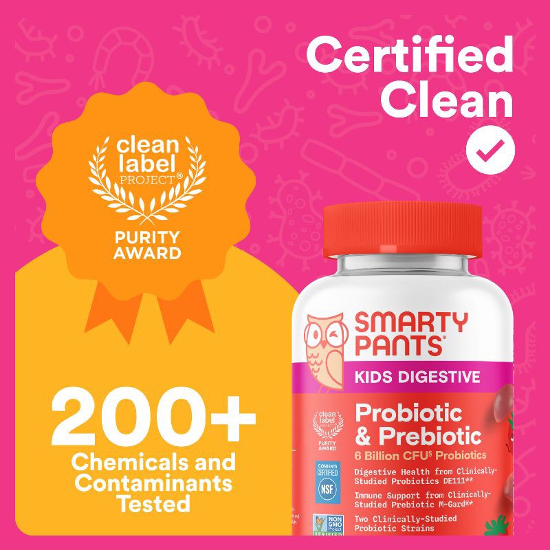 - RESEARCH-BACKED PROBIOTIC & PREBIOTIC GUMMY SUPPLEMENT FOR KIDS: SmartyPants Kids Probiotic & Prebiotic is a multi-strain probiotic and prebiotic with clinically-studied DE111® to support a balanced gut microbiome and digestive health* in a delicious two-gummy serving.