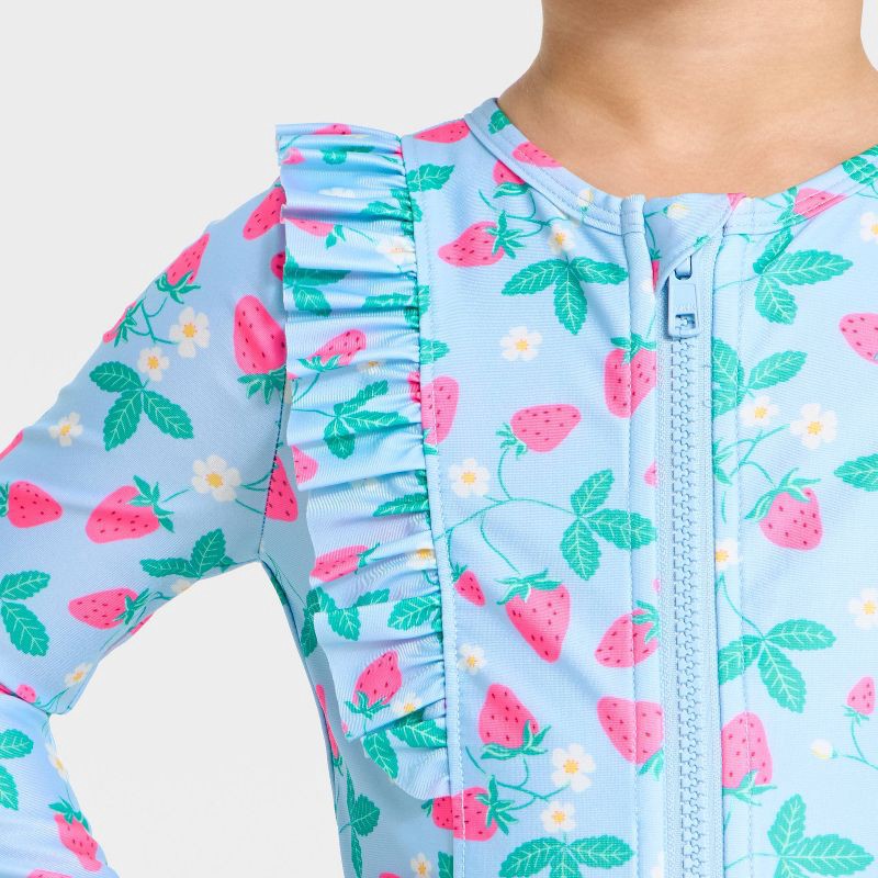 Baby Girls' Strawberry Long Sleeve One Piece Swimsuits - Cat & Jack™ Blue 12M