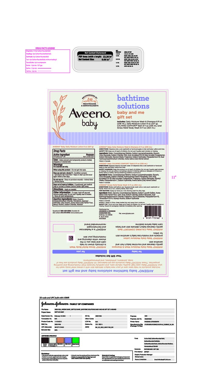 The Aveeno Baby Bathtime Solutions Baby & Me Gift Set includes the essentials you need for your baby's bath, helping you care for your little one's delicate skin, plus, a special bonus for you. The wi…