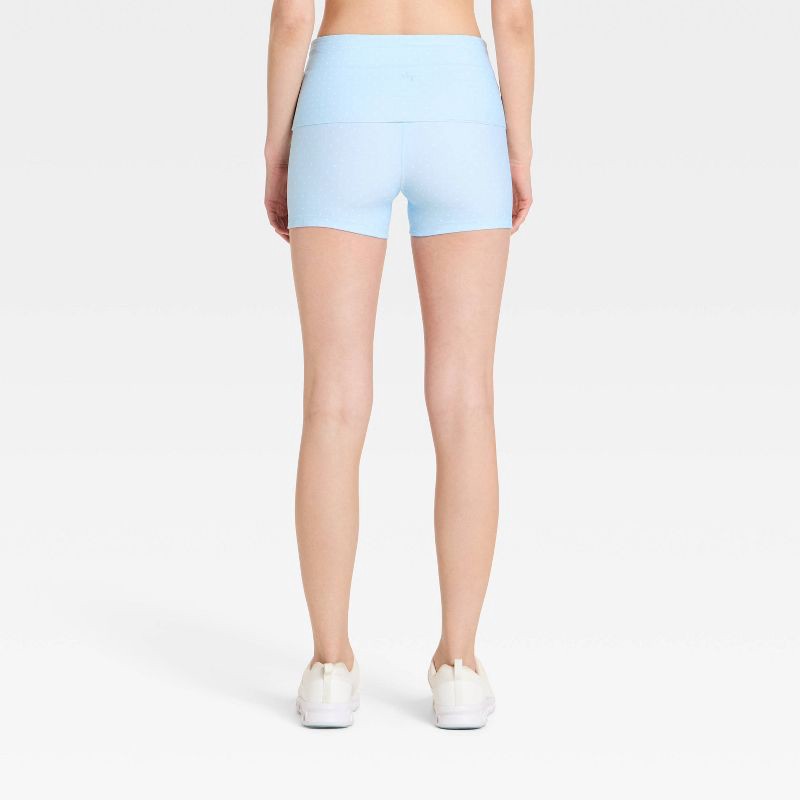 Women's Foldover Waistband Bike Shorts 3" - JoyLab™ Light Blue Polka Dot XXL