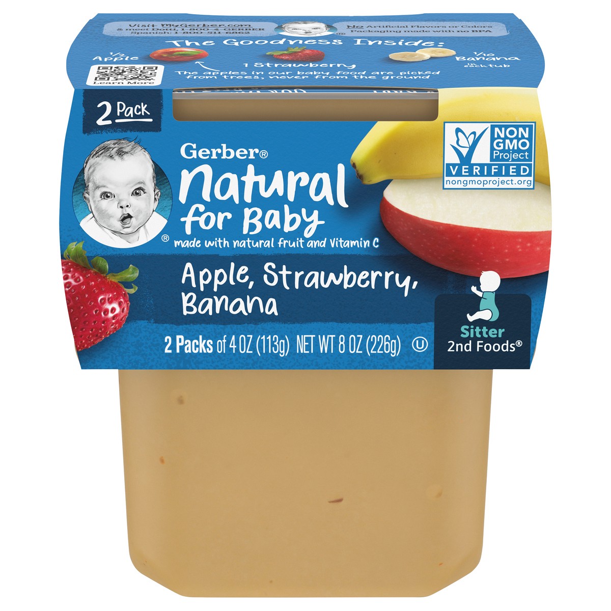 Gerber 2nd Foods Apple Strawberry Banana Baby Food is a delicious fruit puree that makes feeding time a treat. This baby food stage 2 recipe includes 1/2 apple, 3/4 strawberry and 2 teaspoons banana i…