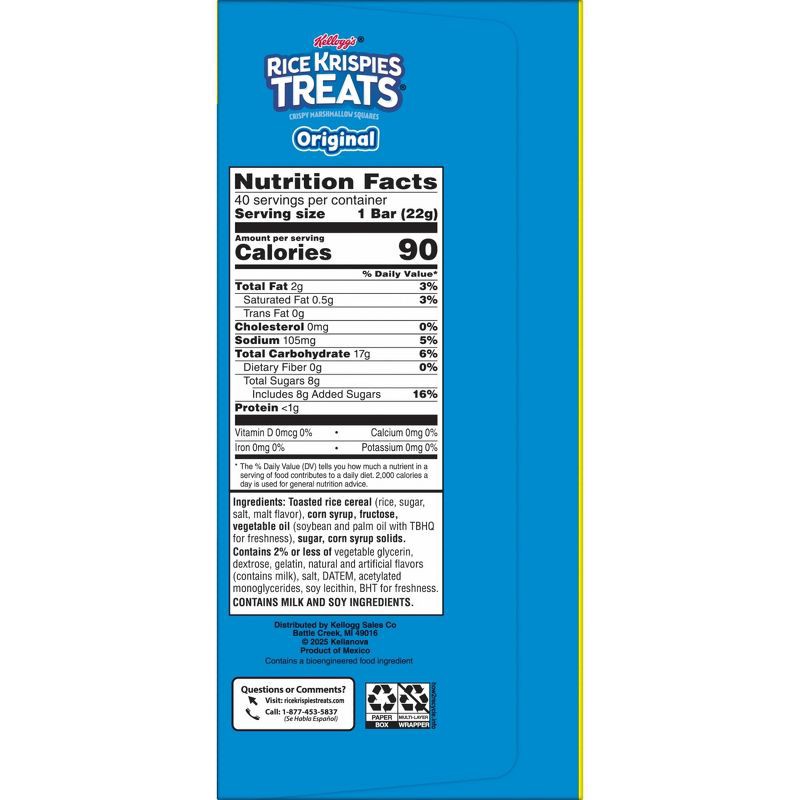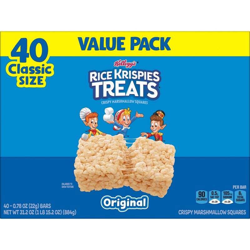 - Includes one 31.2oz value pack box containing 40 Rice Krispies Treats Original marshmallow squares; Packaged for freshness and great taste