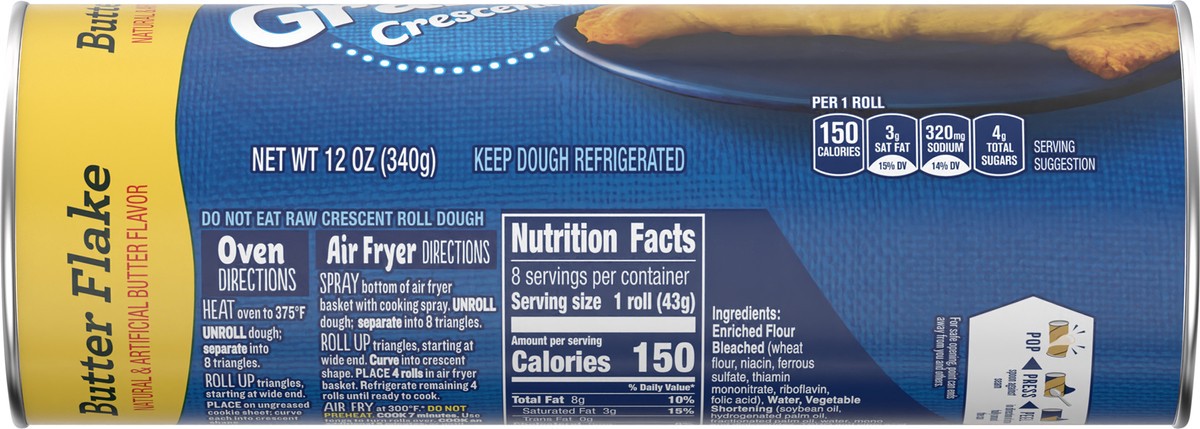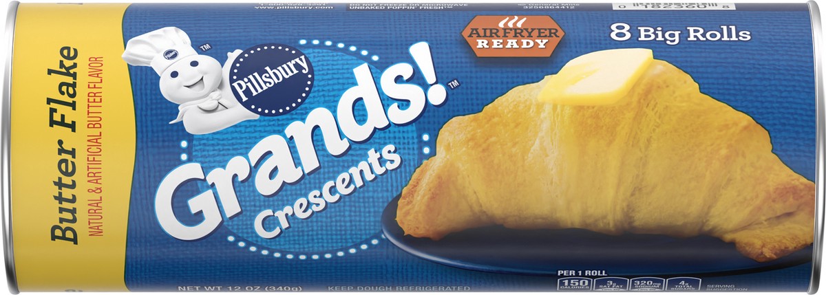 Grands! Crescent Rolls, Butter Flake Refrigerated Canned Pastry Dough, 8 Big Rolls, 12 oz