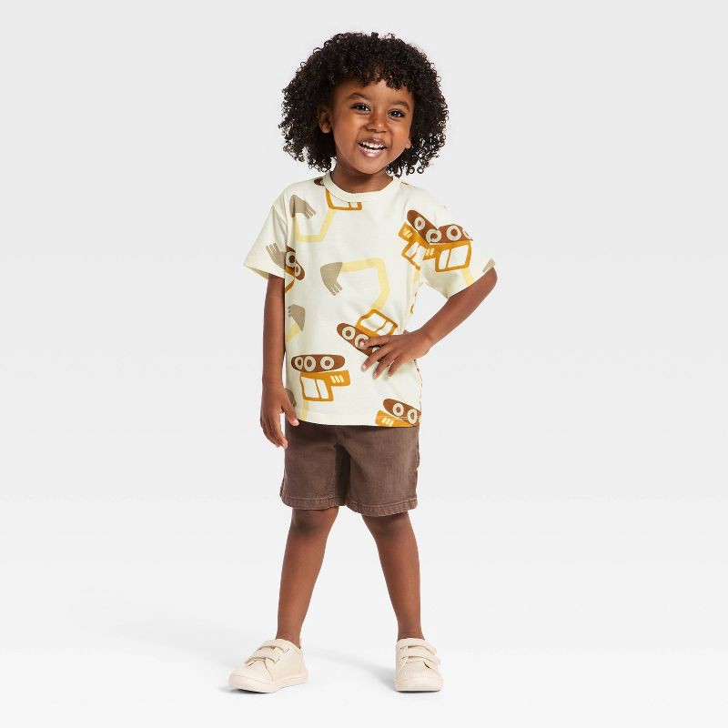 Toddler Boys' Construction Relaxed T-Shirt - Cat & Jack™ Cream 4T