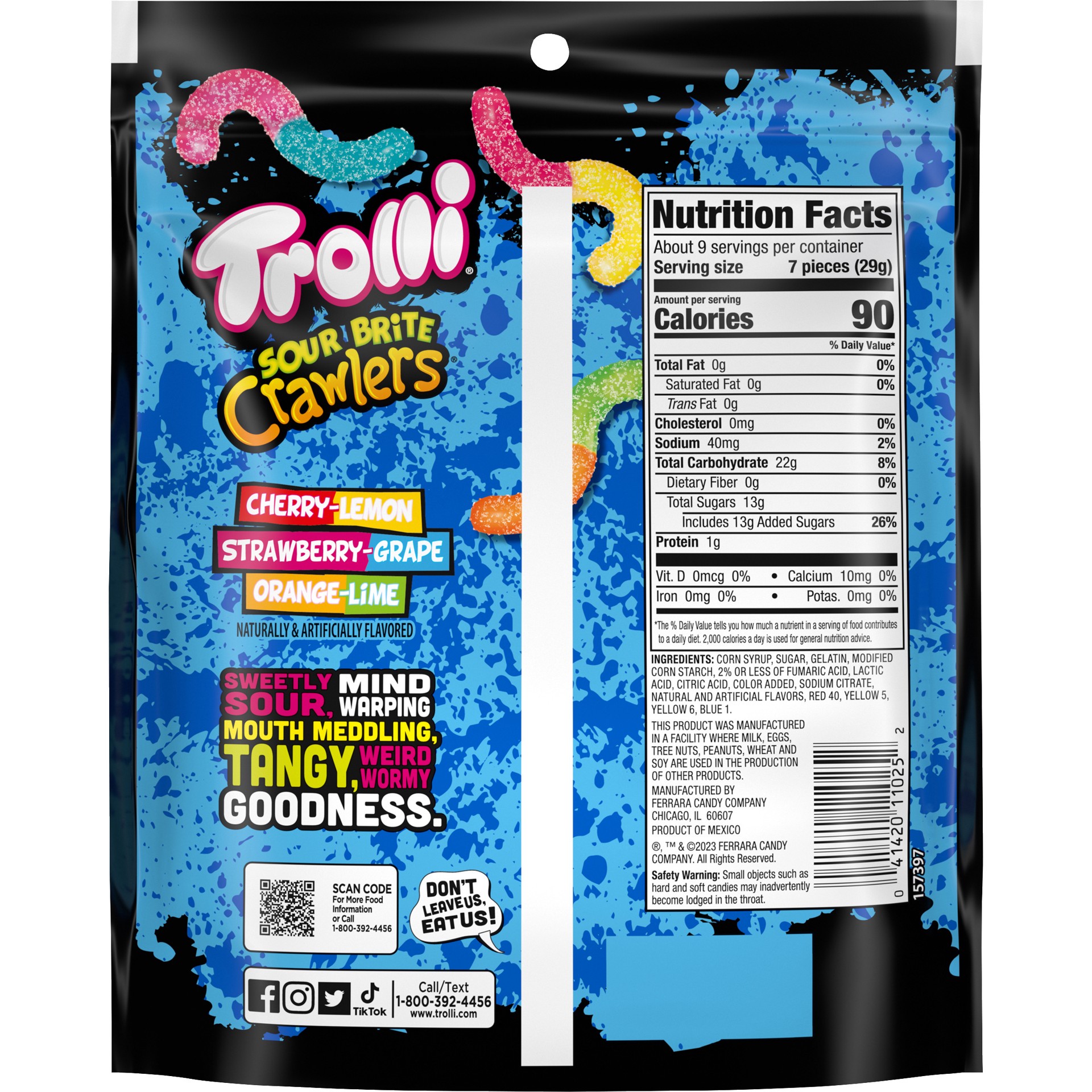 Trolli Sour Brite Crawlers are chewy gummy worms covered in a tongue-twisting sugary goodness, striking the perfect balance of sweet and sour in every bite. The flavors include cherry-lemon, strawberr…