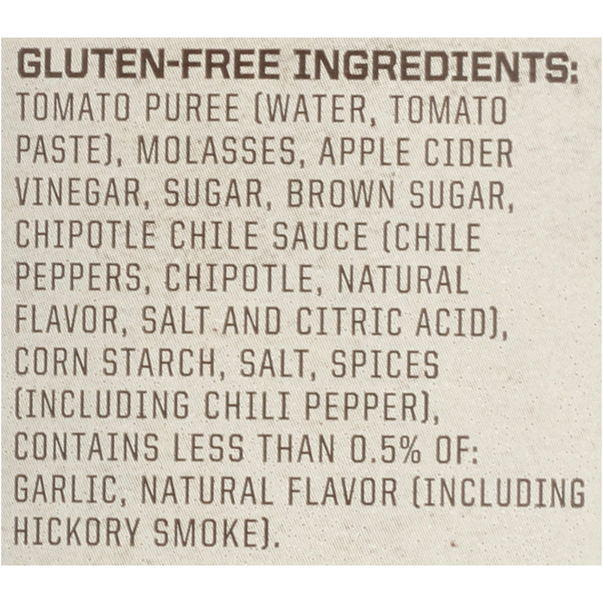 TOMATO PUREE (WATER, TOMATO PASTE), APPLE CIDER VINEGAR, MOLASSES, SUGAR, BROWN SUGAR, CHIPOTLE CHILE PUREE WATER, DRIED CHIPOTLE CHILES), CORN STARCH, SALT, SPICES (INCLUDING CHILI PEPPER), GARLIC &a…