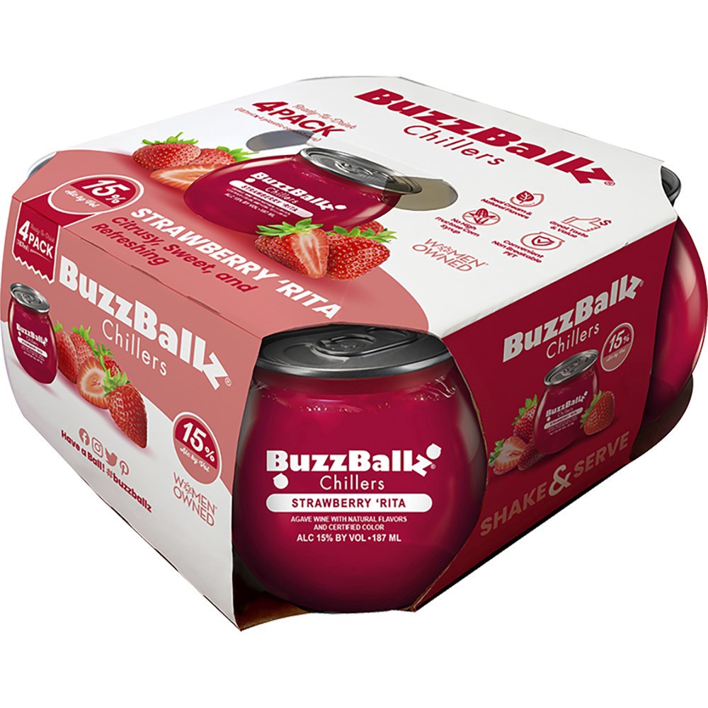 slide 1 of 1, BuzzBallz Chillers Strawberry Rita, 4 ct; 187 ml