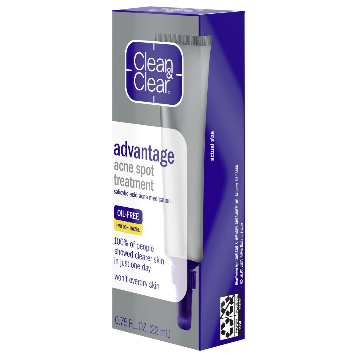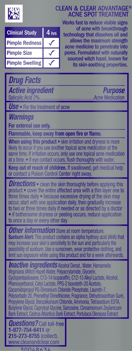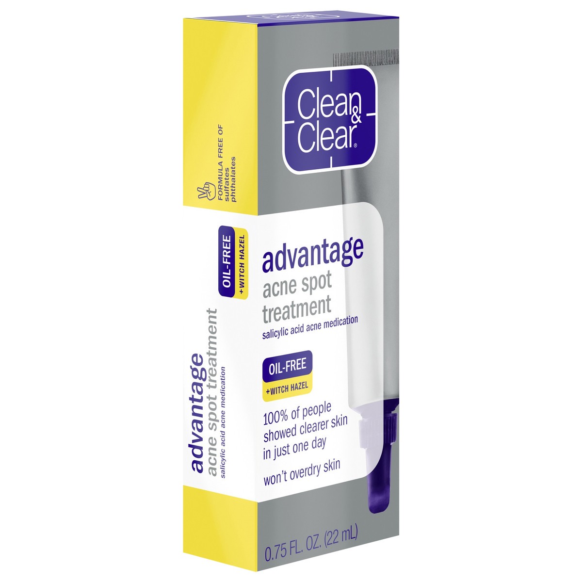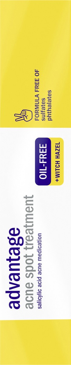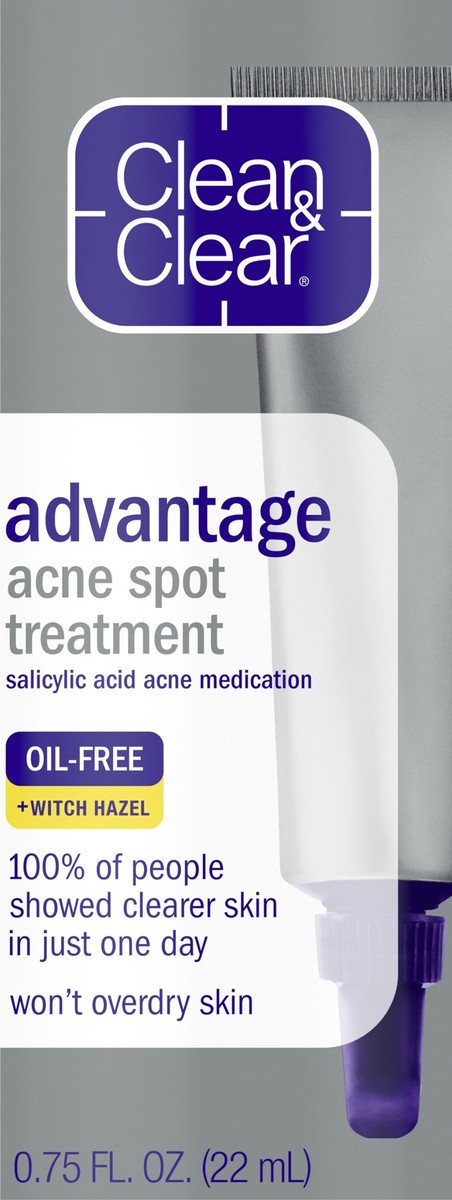- Clean and Clear Advantage Oil-Free Acne Spot Treatment with 2% salicylic acid acne medicationAcne spot treatment gel proven to reduce visible signs of acne in just 1 dayMade with witch hazel