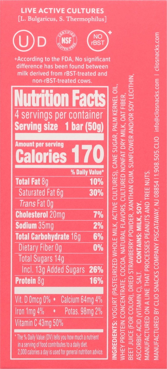 Clio Dark Chocolate Covered Greek Strawberry Yogurt Bar - 4 - 1.76 Oz
