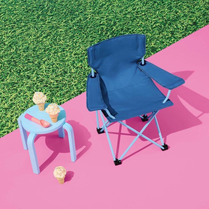 Kids' Foldable Quad Outdoor Portable Camping Chair Navy Blue/Blue - Sun Squad™