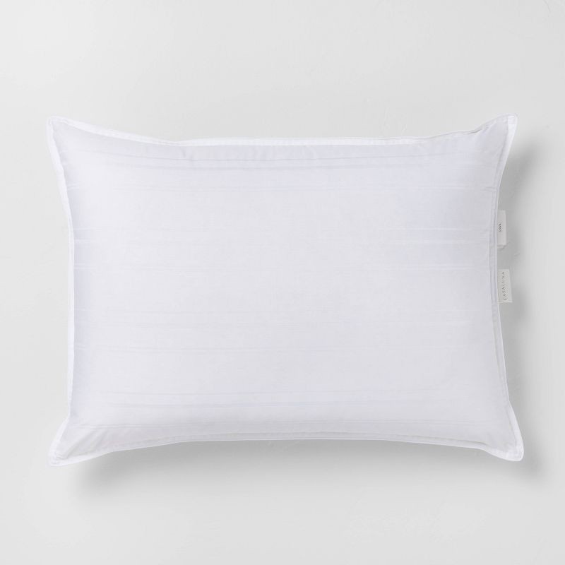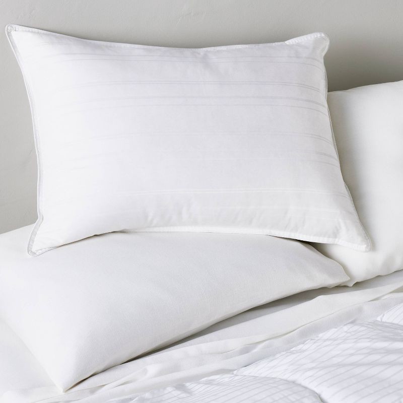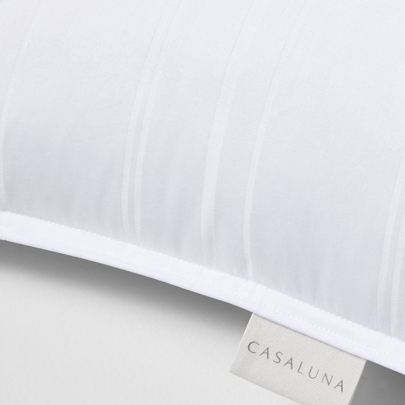 Drift off to sleep in luxurious comfort with the Medium Firm Down Bed Pillow from Casaluna™. This rectangular bed pillow has an inner feather fill to support your neck and head, and a hypoallergenic c…