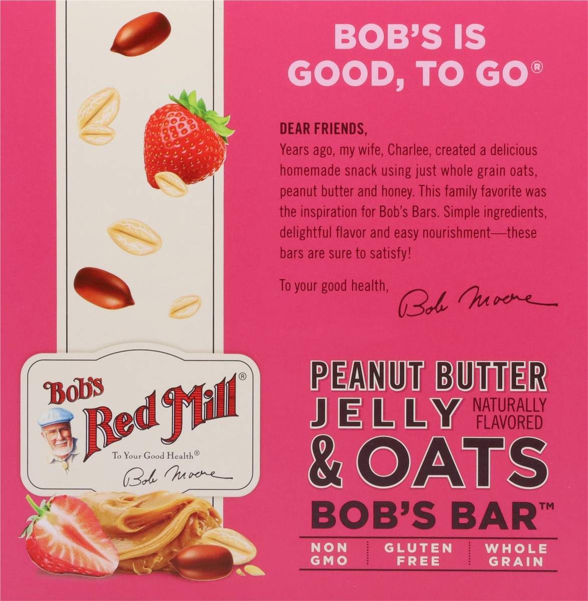 To your good health. Bob Moore. Bob's is good to go. Dear friends, Years ago, my wife, Charlee, created a delicious homemade snack using just whole grain oats, peanut butter and honey. This family fav…
