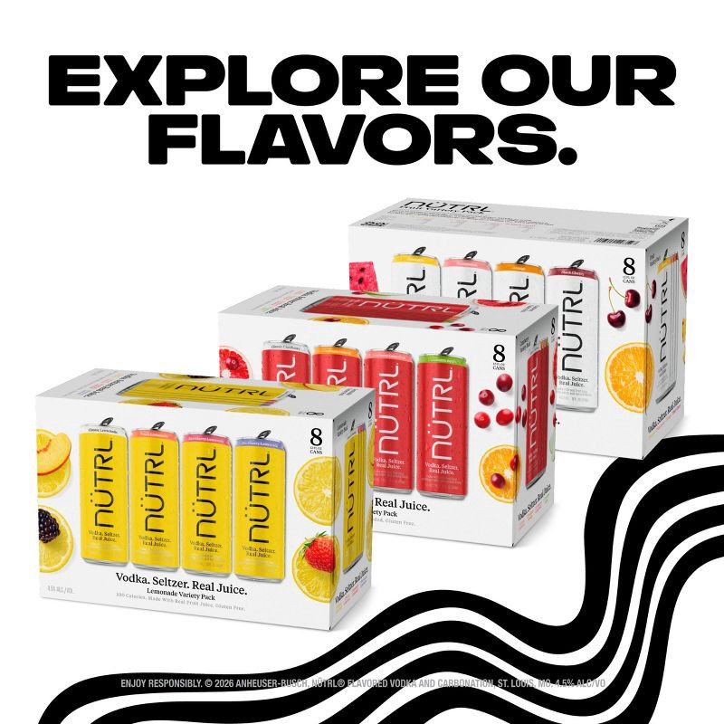 Keep it tasty this holiday season with NÜTRL Lemonade — light, refreshing, and made with vodka, seltzer, and real juice. This easy-drinking variety pack features four delicious flavors: classic lemona…