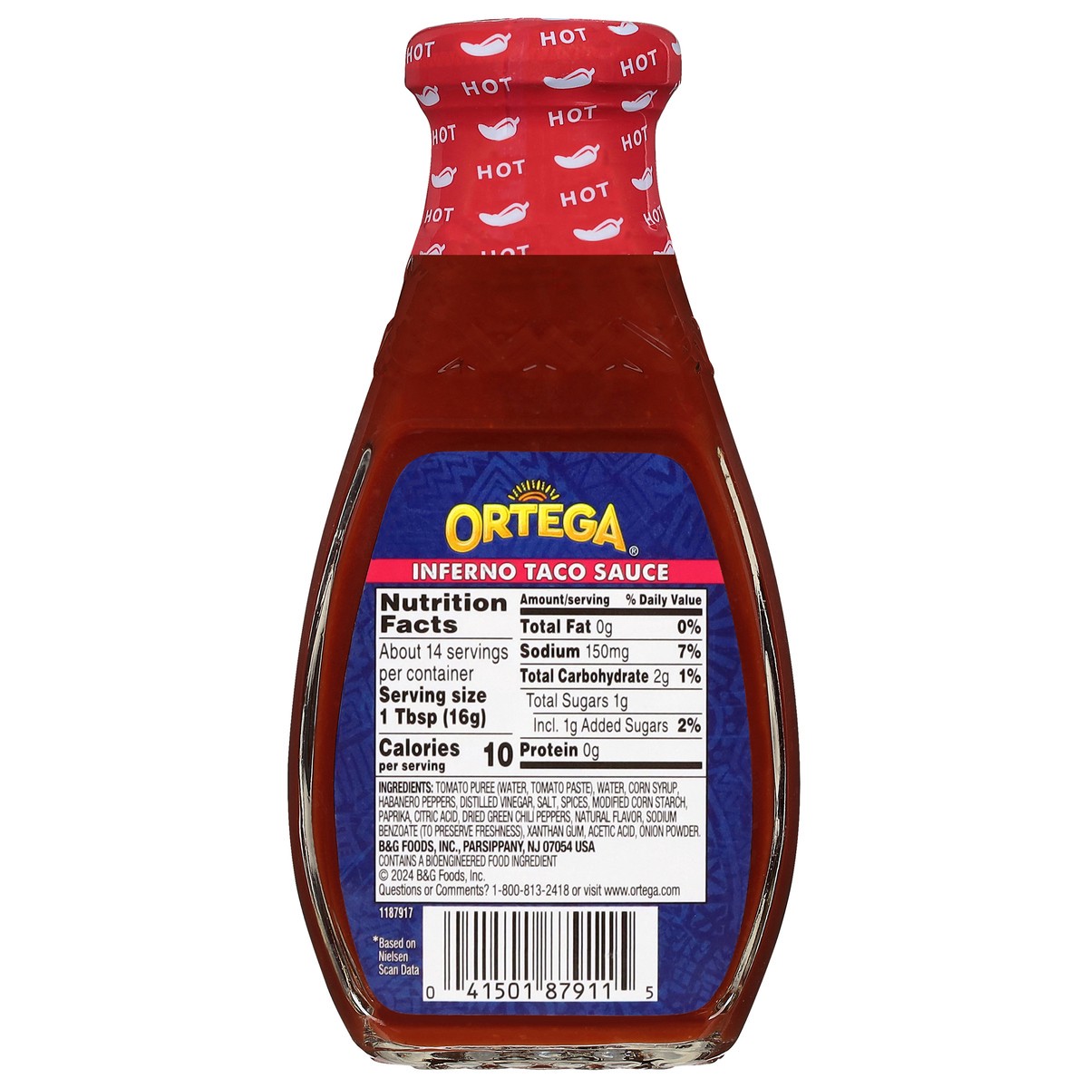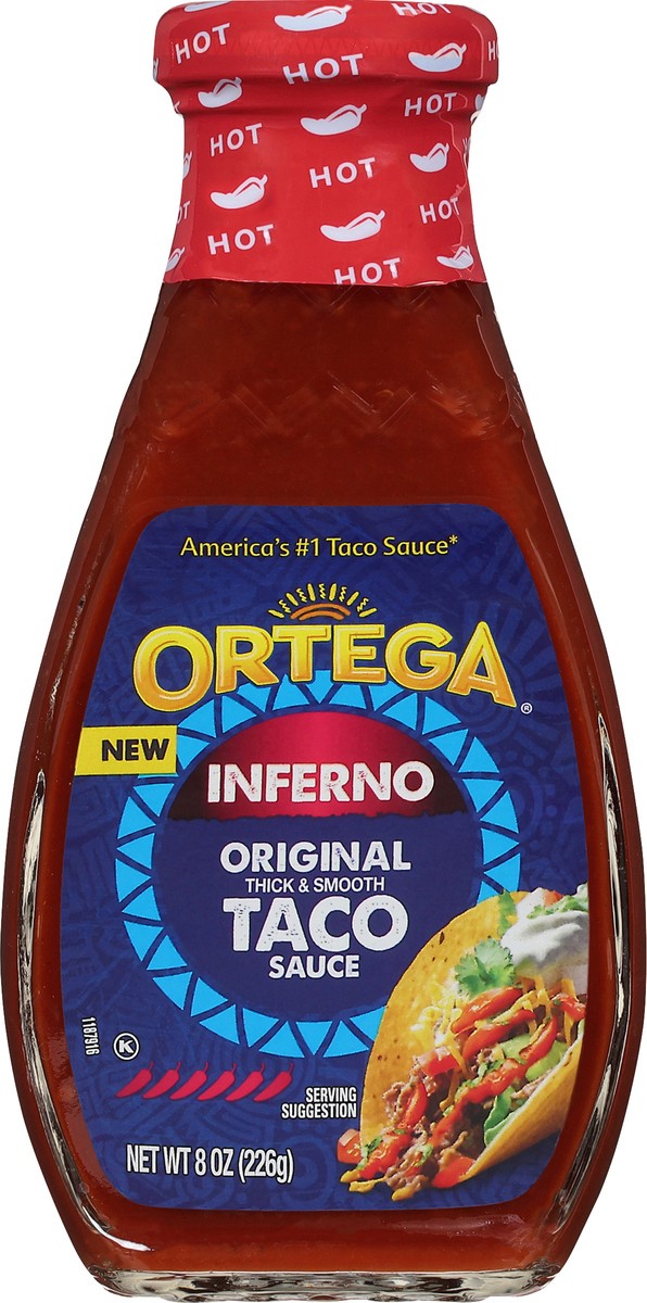 - One 8 ounce bottle of Ortega Inferno Taco Sauce — original thick and smooth hot taco sauce