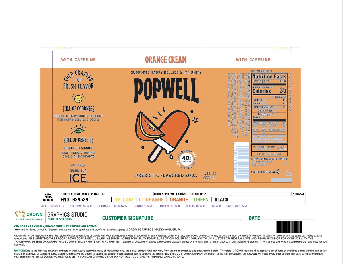 Sparkling Ice Popwell Orange Cream Caffeine 12OZ