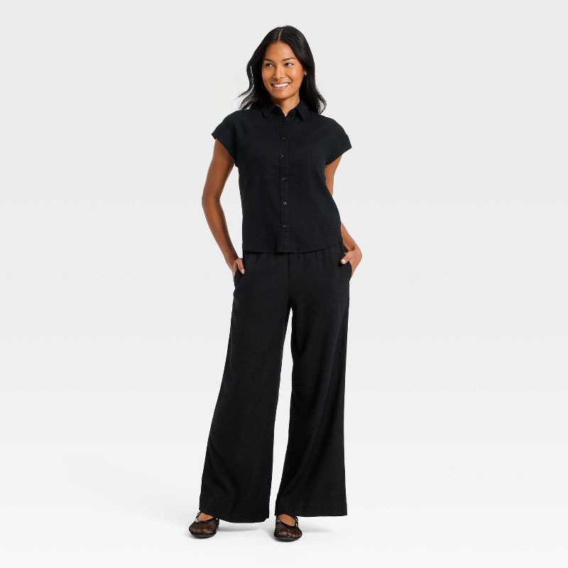 Women's Button-Up Linen Shirt - A New Day™ Black L