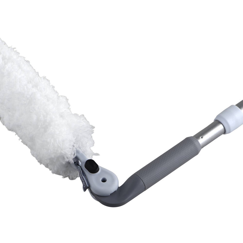 Bends, pivots & locks into position. Quick release head for hand held use. Light weight duster reaches up to 72 inches. Comfort cushion grip. Pivoting joint. Machine washable easy to remove microfiber…