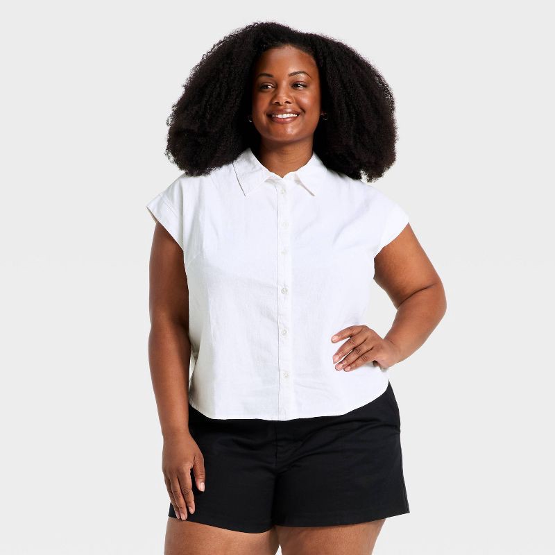 Women's Button-Up Linen Shirt - A New Day™ White XXL