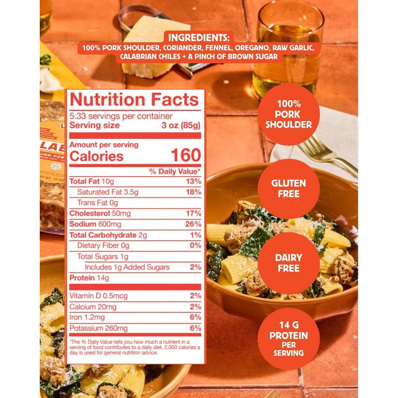 - Spicy ground pork sausage made with 100% all-natural pork shoulder