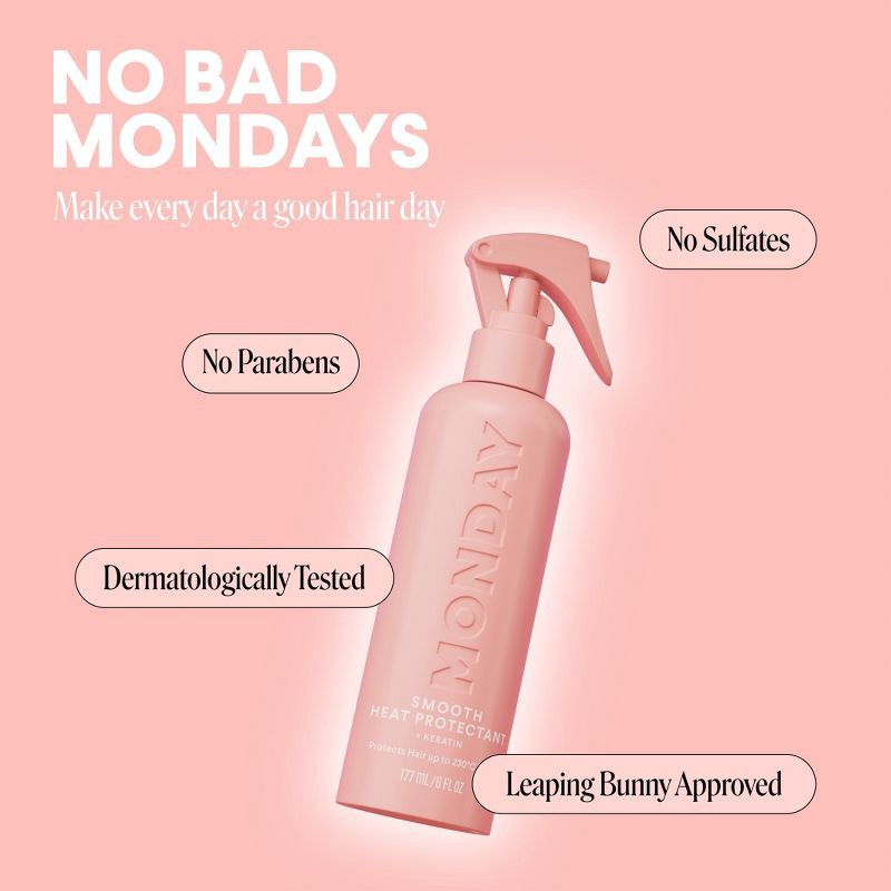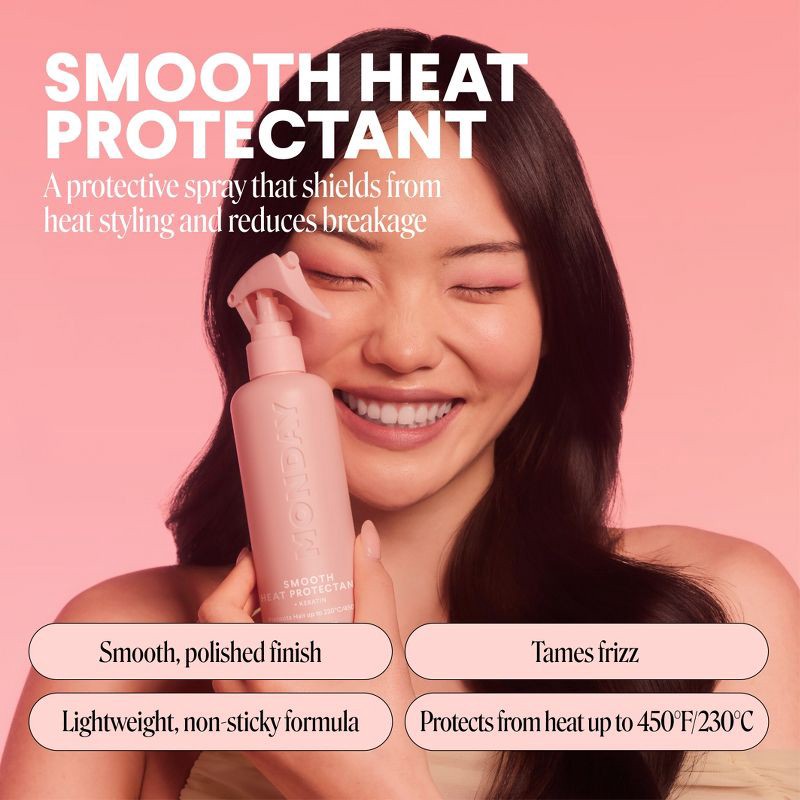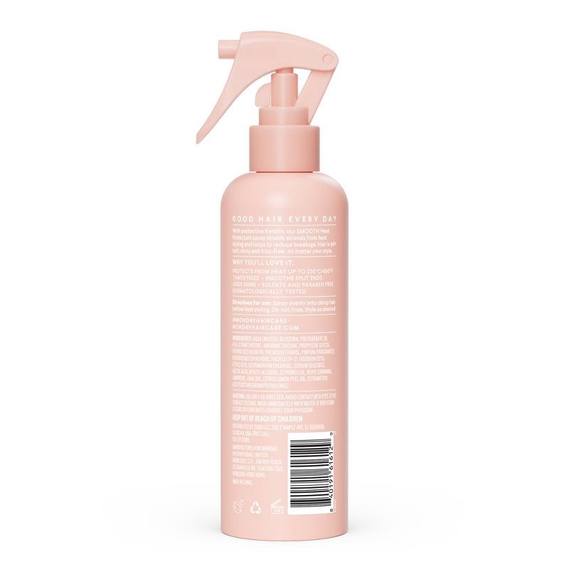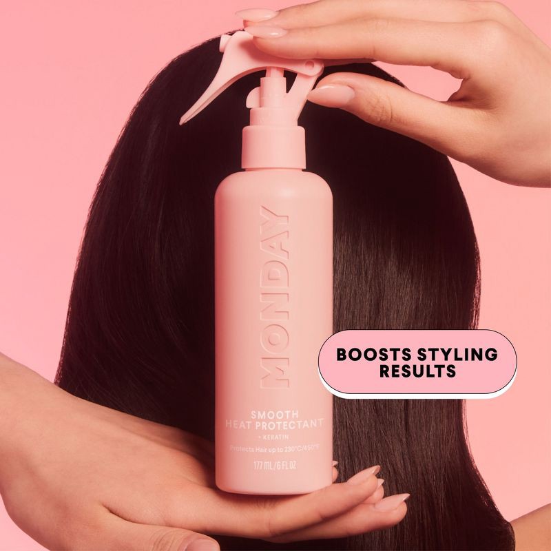 - MONDAY Haircare SMOOTH Heat Protectant – Is a multi-tasker that shields strands from heat up to 450°F/230°C up to 450°f/230°c