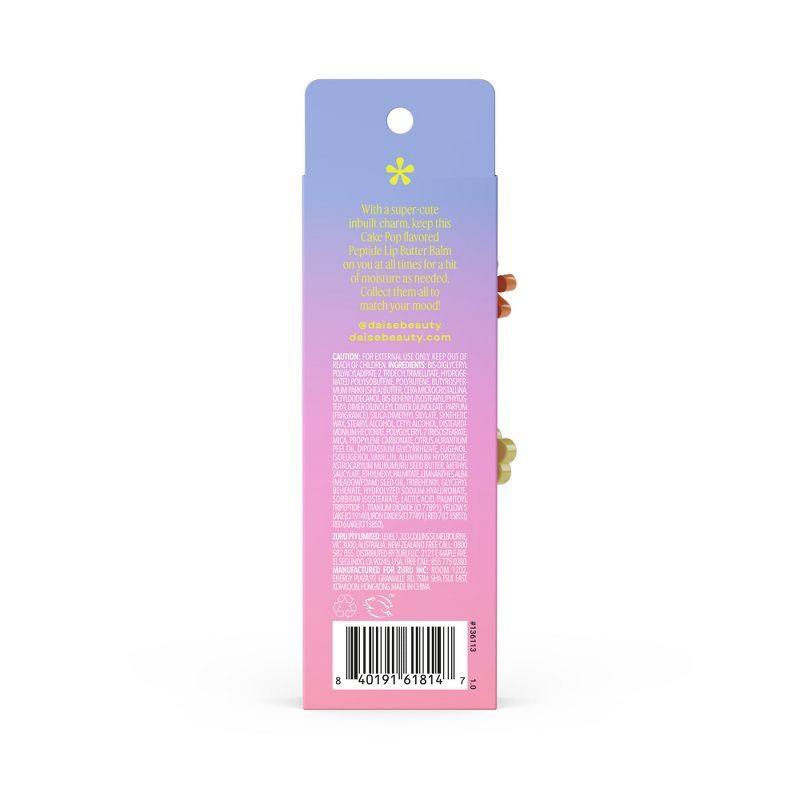 - DAISE Peptide Lip Butter Balm in Cake Pop – Glossy, cake scented balm with a buildable sheer tint for soft, radiant lips