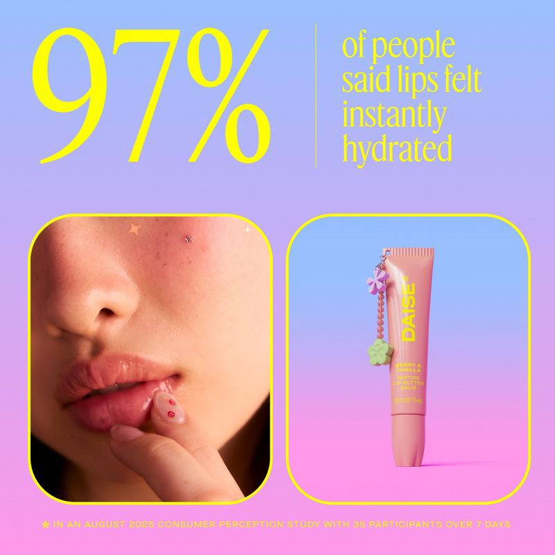 - DAISE Peptide Lip Butter Balm in Berry & Vanilla – Glossy, vanilla berry scented balm with a buildable sheer tint for soft, radiant lips