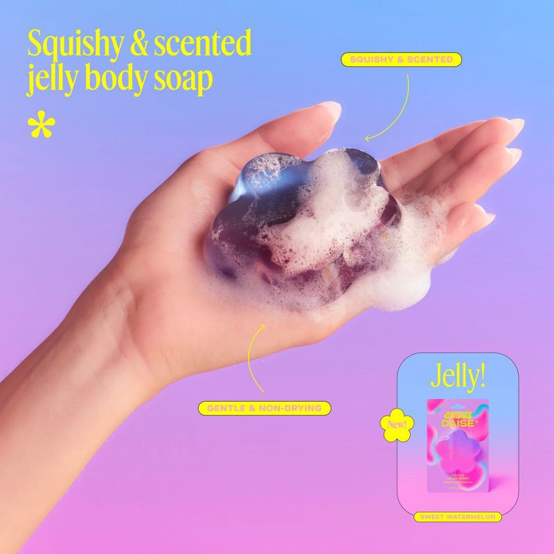 Looking for self-care in jello form? The DAISE Jelly Soap in Froyo is a squishy, watermelon-scented body cleanser made to lift your mood and make your DAISE. Formulated with hydrating Glycerin, this g…