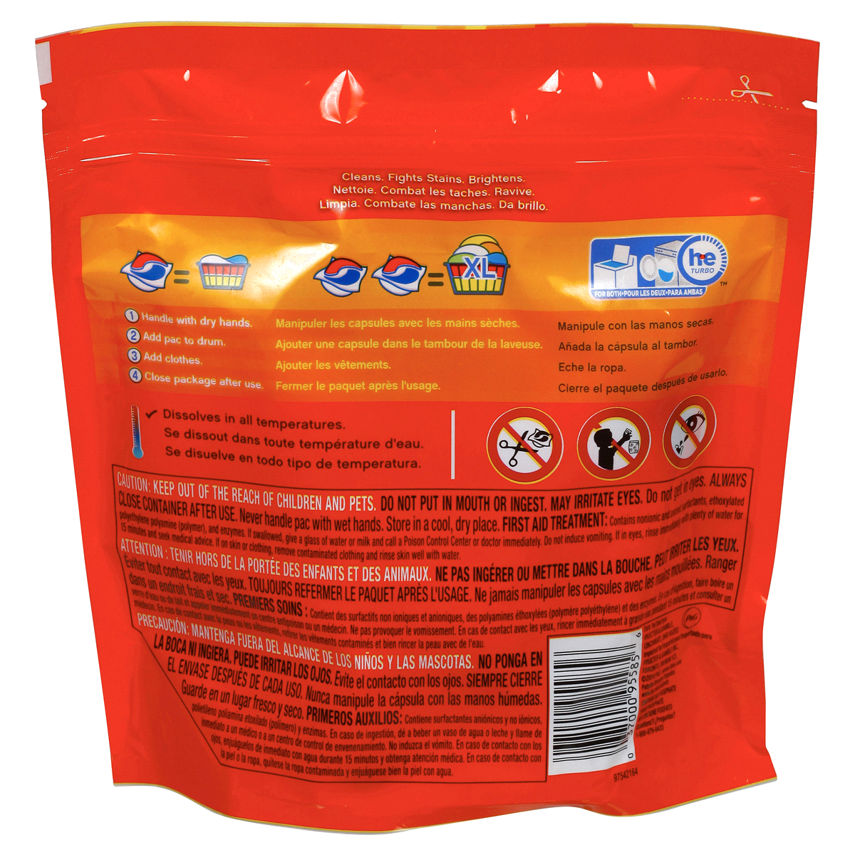 Works on 100% of common stains. Coldwater clean. 3 in 1 = detergent + stain remover + color protector. Anti-theft. Cleans in cold water. Free of phosphates. Contains no phosphates. Dissolves in all te…