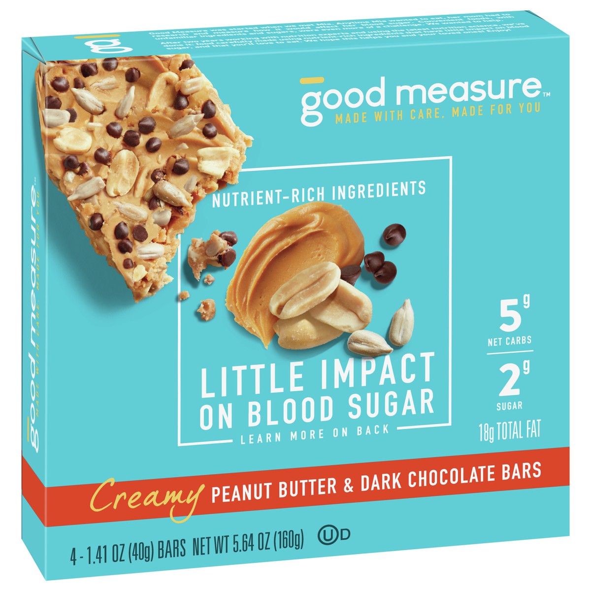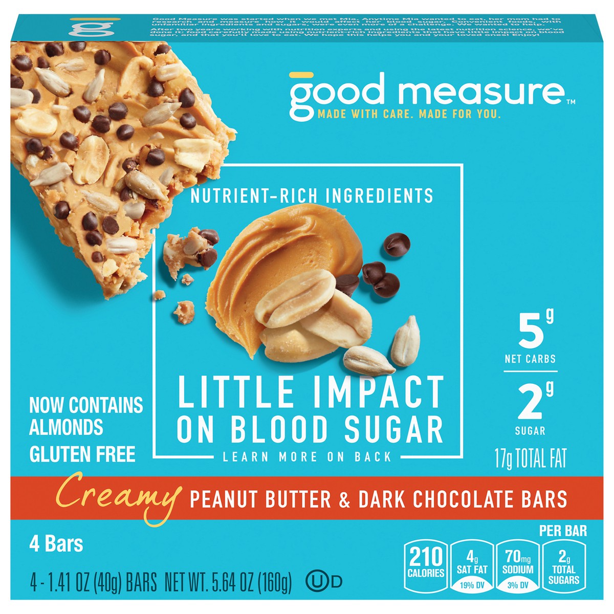 Good Measure Creamy Peanut Butter and Dark Chocolate Bars 4 Count