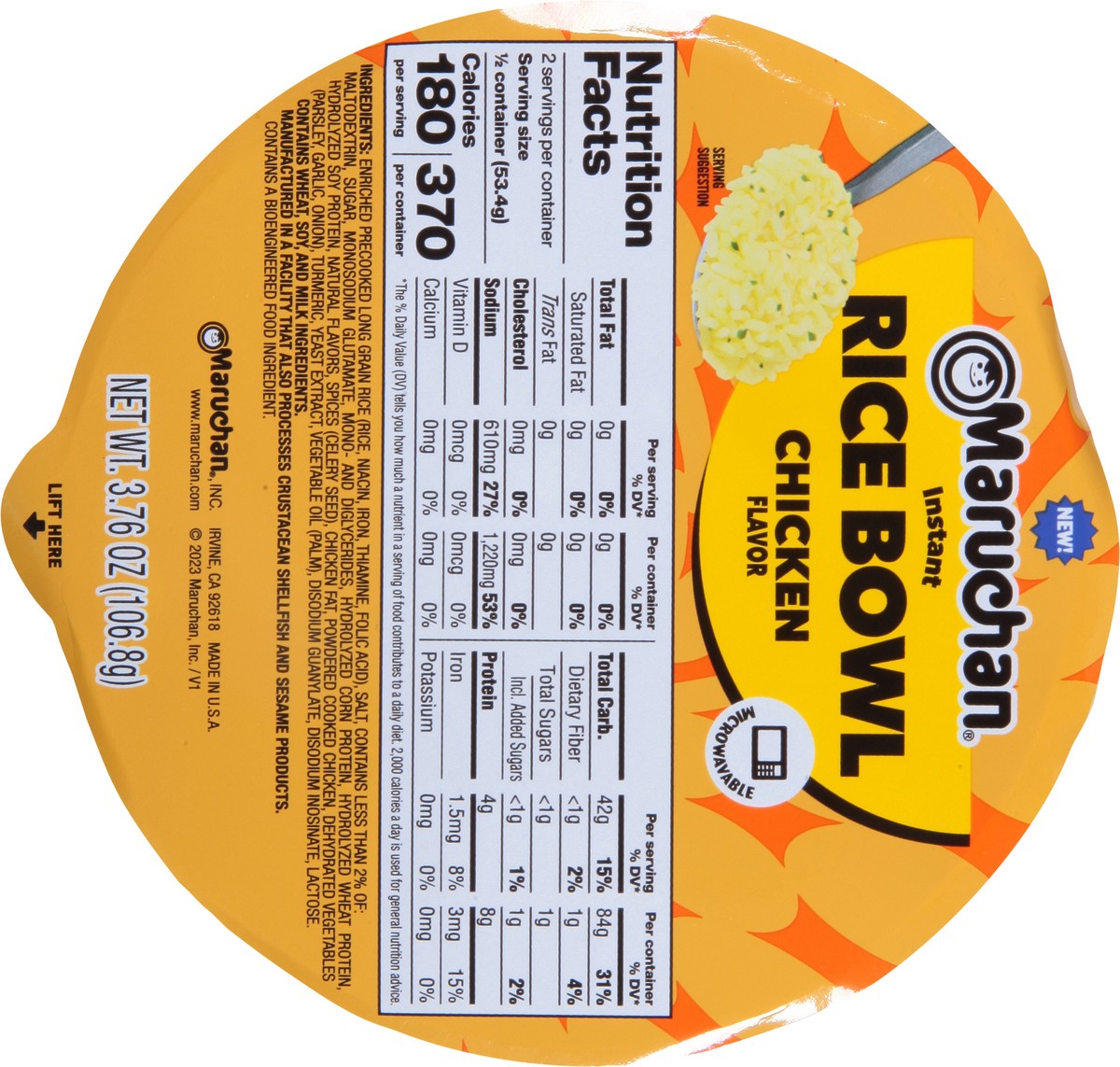 Maruchan Instant Chicken Flavor Rice Bowl 3.76 oz