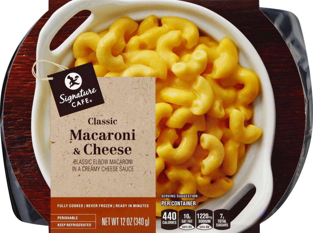 Classic elbow macaroni in a creamy cheese sauce. Fully cooked. Never frozen. Ready in minutes. Per Container: 440 calories; 10 g sat fat (50% DV); 1220 mg sodium (53% DV); 7 g total sugars. Quality & …