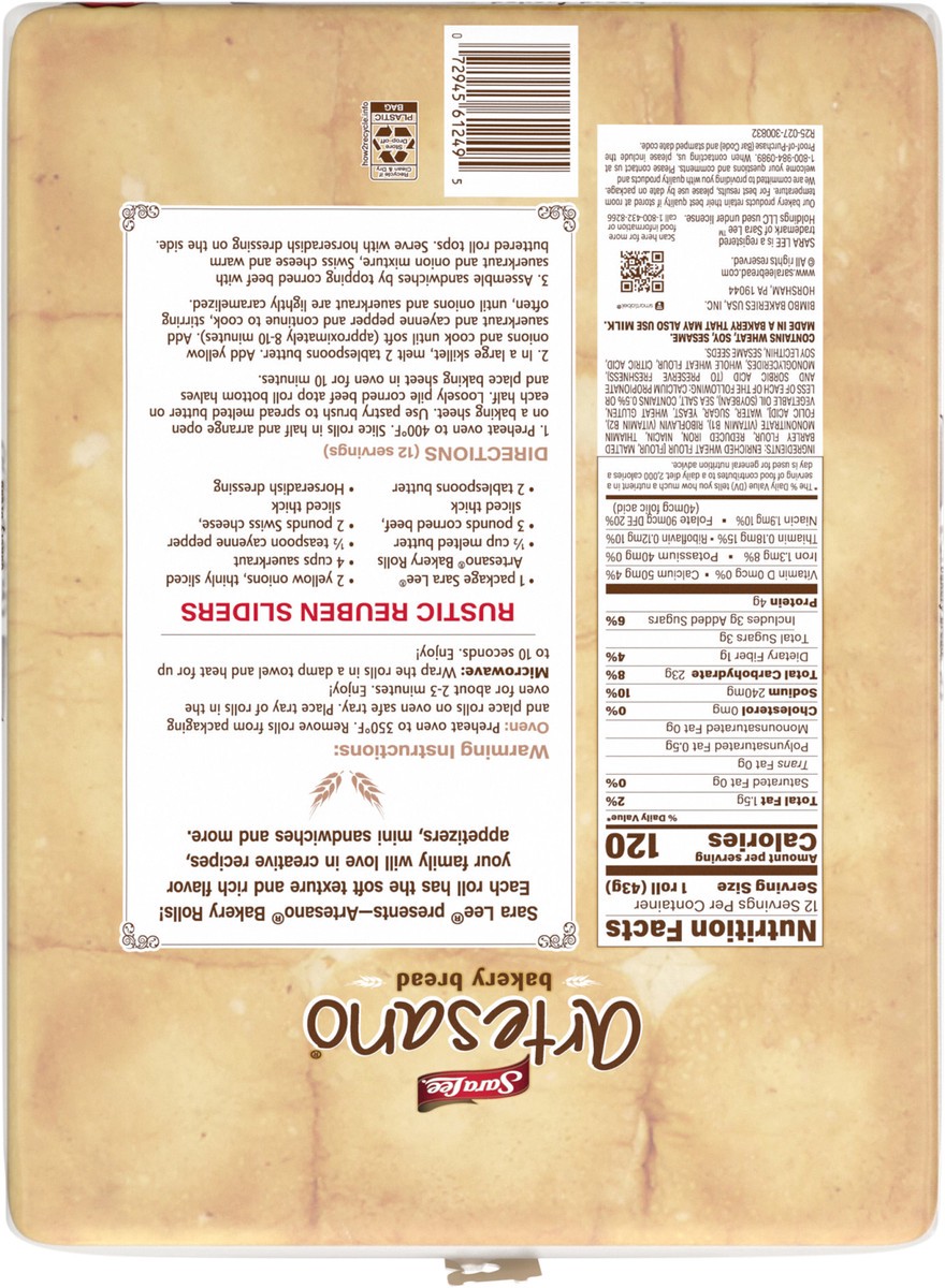 Sara Lee Artesano Bakery Rolls - 18 Oz
