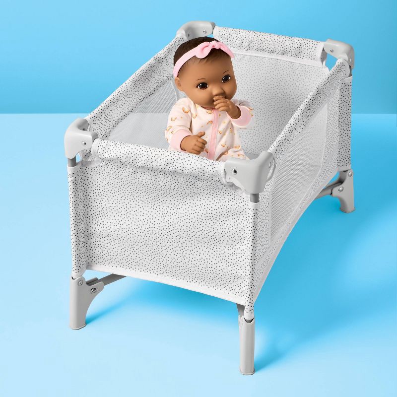 - Gray dot doll crib