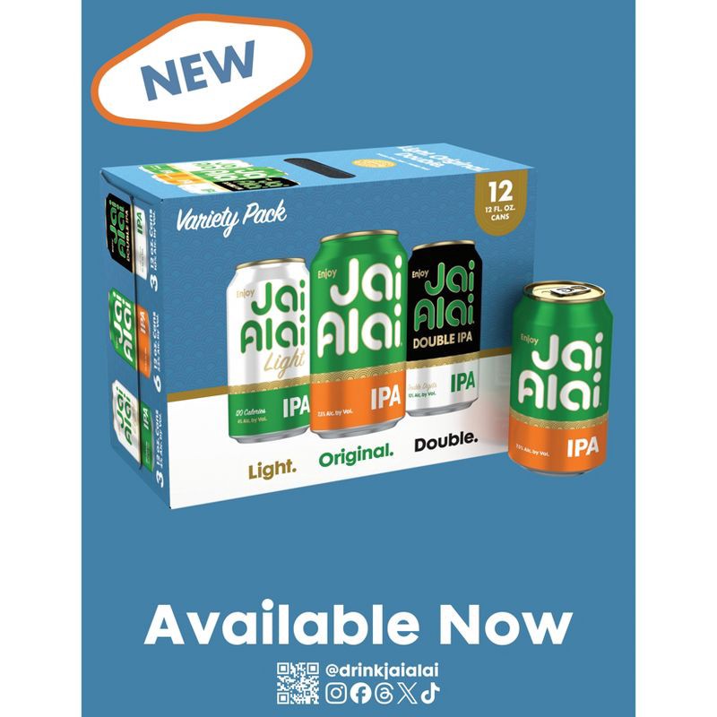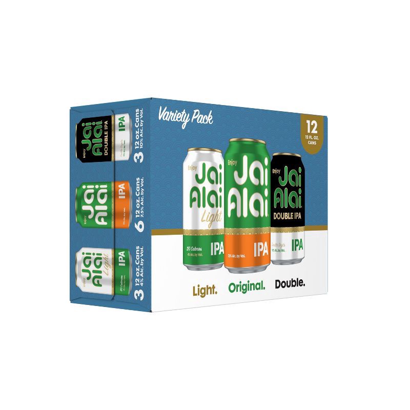 - Variety Pack featuring Jai Alai Light IPA 4% ABV, Jai Alai IPA 7.5% ABV, and Jai Alai DIPA 10% ABV