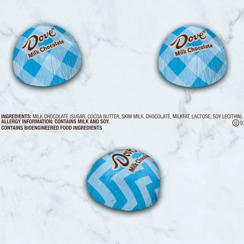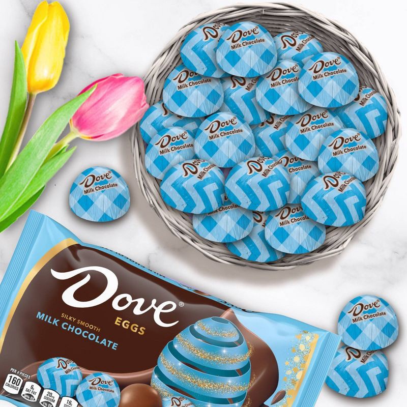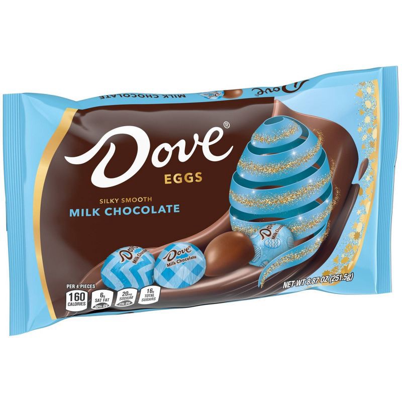 - Contains one (1) 8.87-ounce bag of individually wrapped DOVE Milk Chocolate Easter Egg Candy