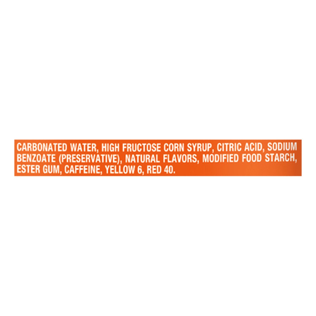 Carbonated Water, High Fructose Corn Syrup, Citric Acid, Sodium Benzoate (Preservative), Natural Flavors, Modified Food Starch, Ester Gum, Caffeine, Yellow 6, Red 40.