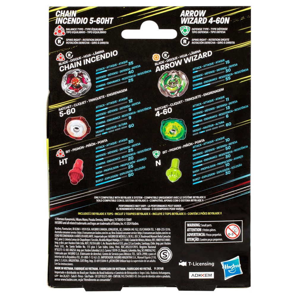 Beyblade X Chain Incendio 5-60HT and Arrow Wizard 4-60N Top Dual Pack Set