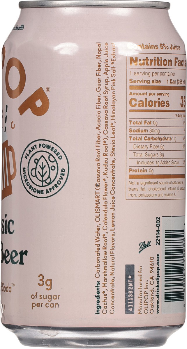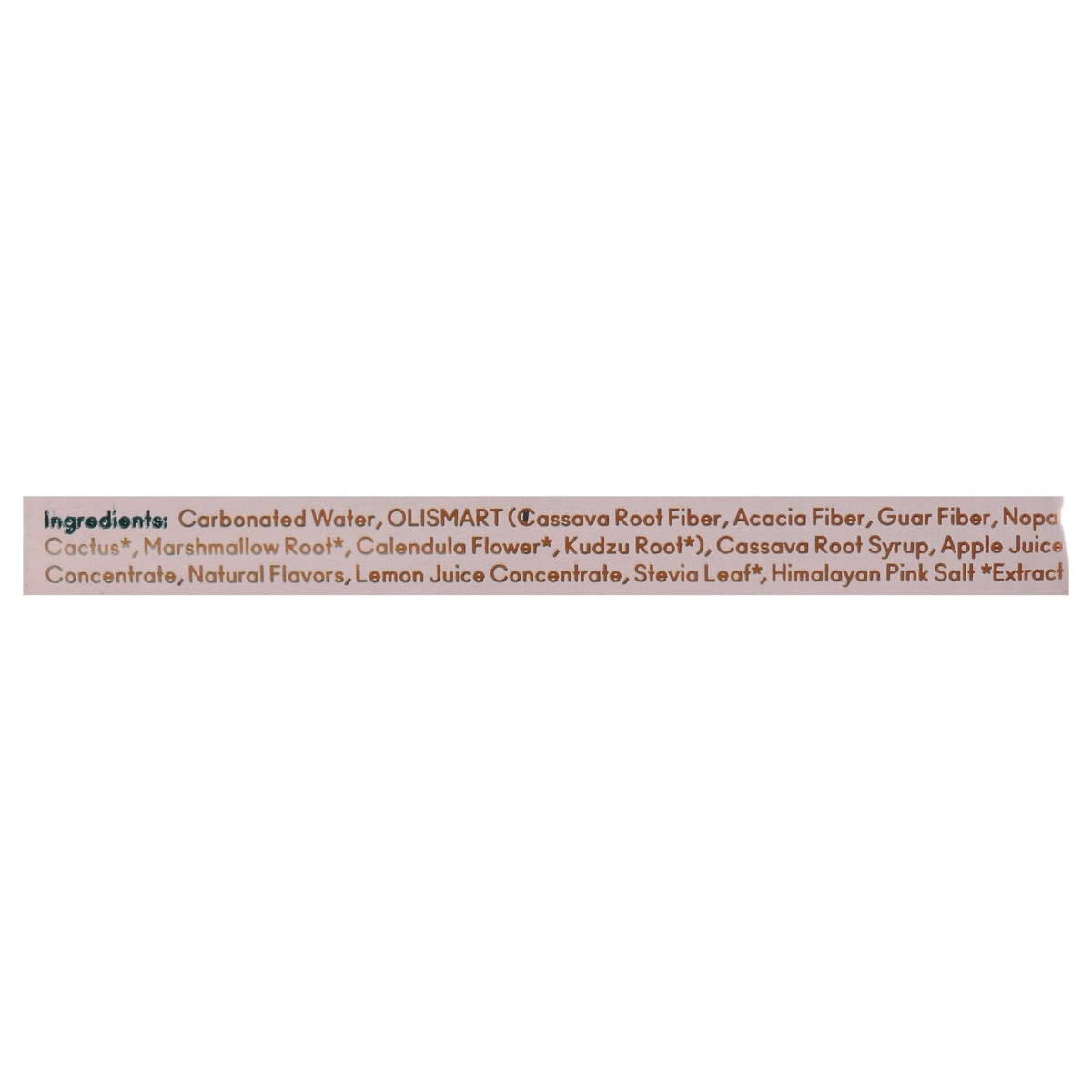 Carbonated Water, Olismart (Cassava Root Fiber, Acacia Fiber, Guar Fiber, Nopal Cactus*, Marshmallow Root*, Calendula Flower*, Kudzu Root*), Cassava Root Syrup, Apple Juice Concentrate, Natural Flavor…