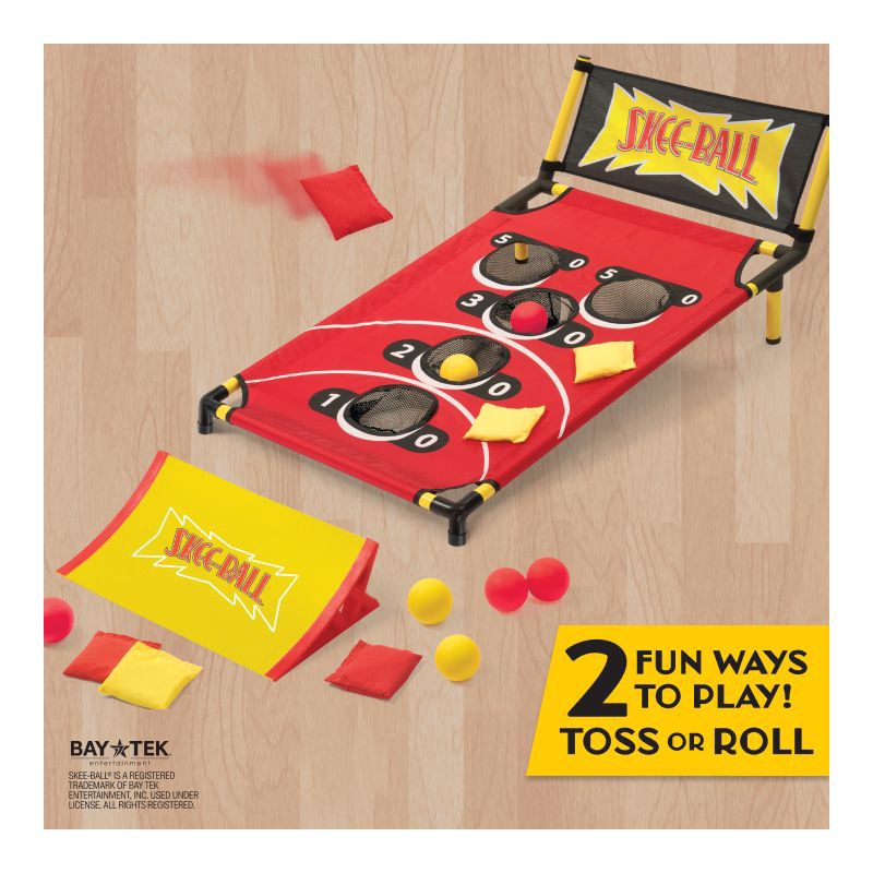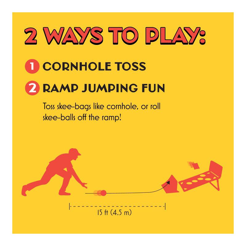 - 2 Ways to Play: Play classic cornhole toss or roll skee-balls up the ramp for exciting jumping action. Two games in one.