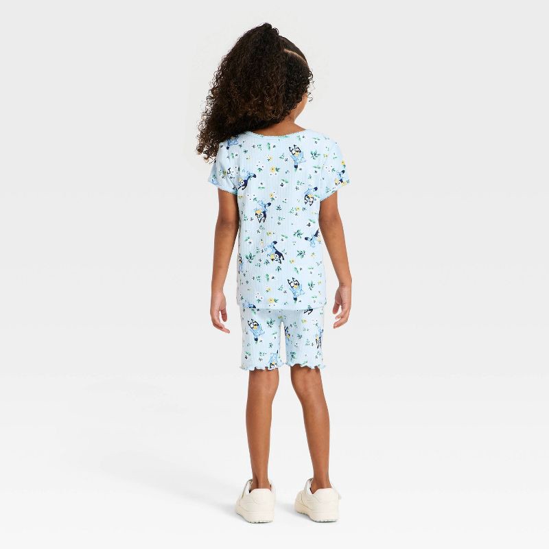 Toddler Girls' 2pc Bluey Pointelle Ribbed T-Shirt & Shorts Set - Blue 2T