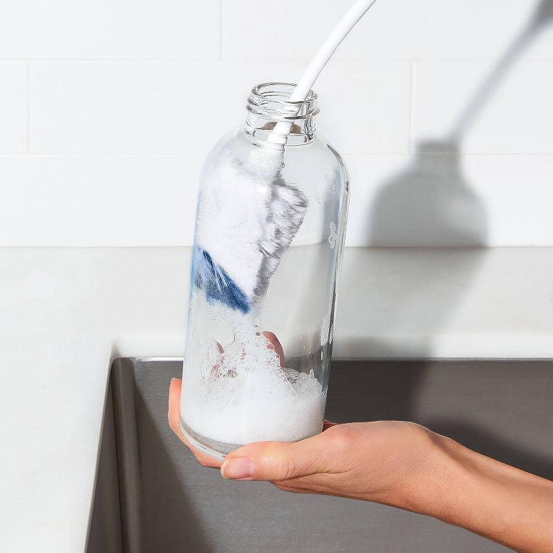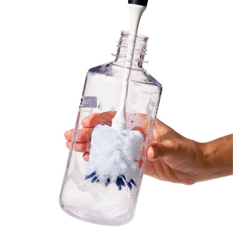 - Stiffer bristles on brush tip clean residue from bottom of bottles