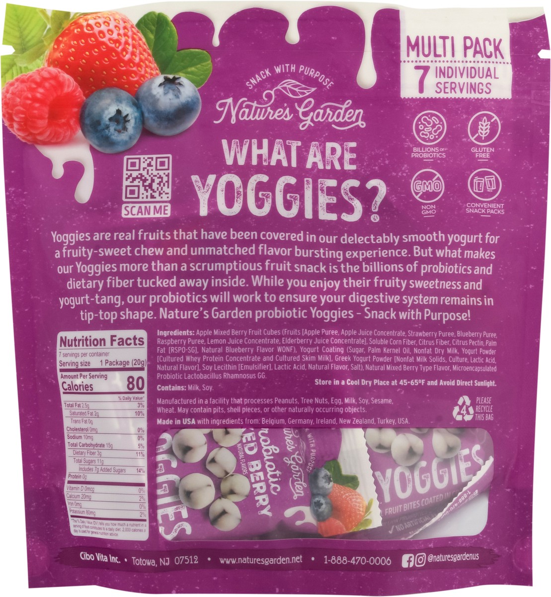 Nature's Garden Probiotic Mixed Berry Yoggies Multi Pack 7 - 0.7 oz Bags